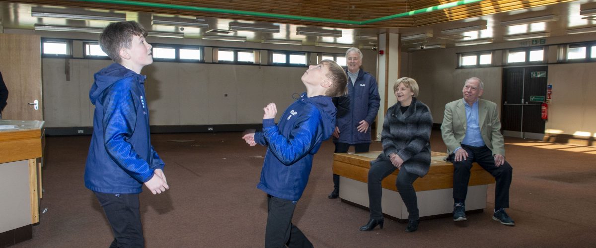 Image: Taking advantage of the space before the renovation are L-R Zack Mournian and Ryan Nicol players for Dyce Boys Club FC-both 12 YO watched by Councillor Jenny Laing-Leader of Aberdeen City Council, Len Nicol-Treasurer and Coach at Dyce Boys Club FC and Tony Dawson- Sport Aberdeen chairman